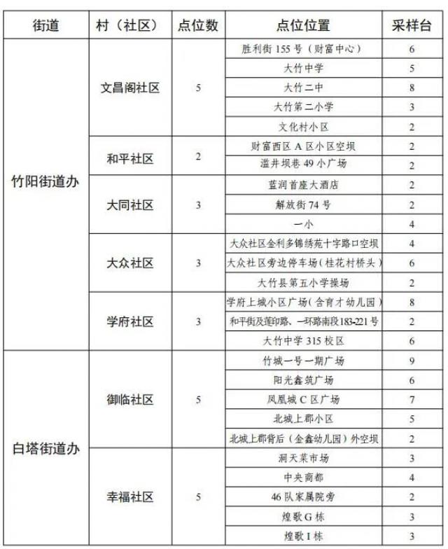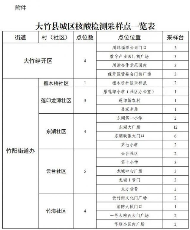 附件:大竹县城区核酸检测采样点一览表