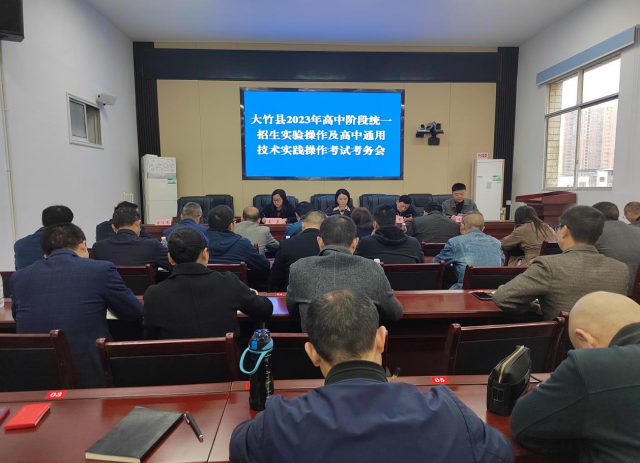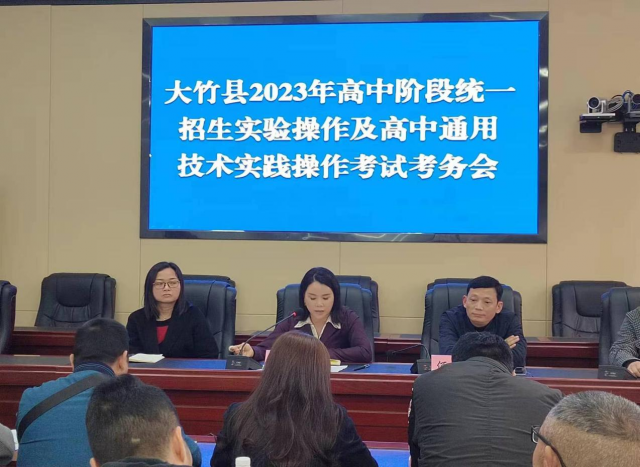 4月23日,大竹县2023年高中阶段统一招生实验操作及高中通用技术实践操作考试考务会在大竹县教育局七楼会议室召开。全县各中学分管实考工作的负责人及电教技装中心全体职工参加了本次会议,会议由电教技装中心党支部副书记袁岸松主持。