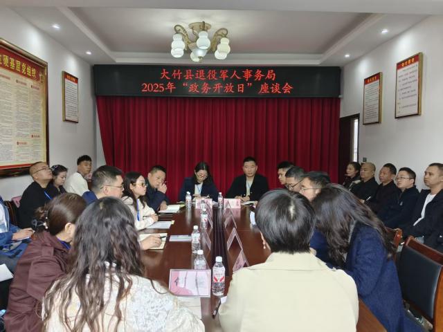 为深入推进阳光、透明、开放、服务型政府建设,持续完善政务公开工作机制,切实保障服务对象的知情权、参与权、表达权和监督权,进一步提升退役军人工作质效,2025年11月4日,大竹县退役军人事务局紧扣“开门纳谏听民声,阳光服务聚民心”主题,精心组织开展了2025年“政务开放日”活动。活动邀请了县人大代表、政协委员、退役军人代表、群众代表及媒体记者等共20余人参加。