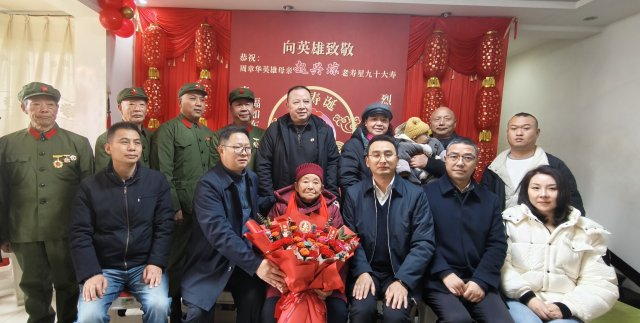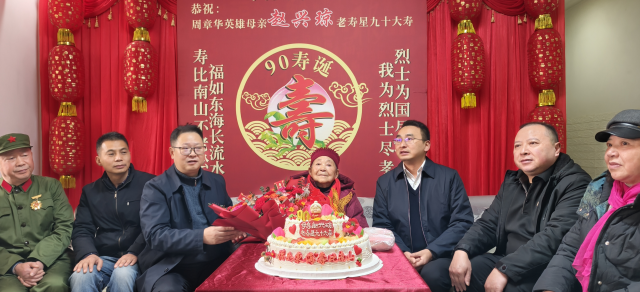 凛冬时节,暖意融融。12月26日,大竹县锦绣苑内,一场温馨庄重的祝寿活动如约举行。大竹县退役军人事务局党组书记、局长孙国主持本次活动,当地退役军人事务部门携手周章华烈士生前并肩作战的战友、亲属及社会各界爱心人士,共同为烈士母亲赵兴琼庆贺90岁高寿,以实际行动传递对烈士亲属的尊崇与关怀。