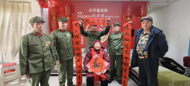 随后,参战战友代表张尚筠追忆烽火岁月,讲述周章华冲锋陷阵的战斗身影与战友间生死与共的深厚情谊,动情处几度哽咽,引得众人动容。发言结束后,战友们还送上慰问品与慰问金,诚挚叮嘱老人保重身体、安享晚年。