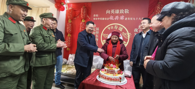 伴随着生日快乐的旋律,赵兴琼老寿星许愿吹烛,望着眼前一张张真挚的面孔,感动得热泪夺眶而出。她紧握工作人员的手哽咽道:“党和政府一直记挂着我们,这份温暖让我心里特别踏实。”现场掌声与祝福声交织,汇成尊崇英烈、关爱烈属的暖流。