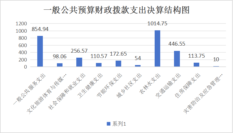 2024年一般公共预算财政拨款支出3131.84万元,主要用于以下方面:一般公共服务支出854.94万元,占27.30%;文化体育与传媒支出98.06万元,占3.13%;社会保障和就业支出256.57万元,占8.19%;卫生健康支出110.54万元,占3.53%;节能环保支出172.65万元,占5.51%;城乡社区支出54万元,占1.72%;农林水支出1014.75万元,占32.40%;交通运输支出446.55万元,占14.26%;住房保障支出113.75万元,占3.63%;灾害防治及应急管理支出10.00万元,占0.32%。