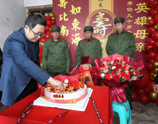春和景明,慈萱荣寿。为深入落实烈属尊崇优待政策,传承英烈精神,3月18日,达州市退役军人事务局党组书记、局长王明清带队赴大竹县,与大竹县退役军人事务局共同为孙必奎烈士的母亲胡秀伯老人精心举办九十寿辰祝寿活动,以家国之名,向这位培育了英雄儿女的伟大母亲致以崇高敬意。