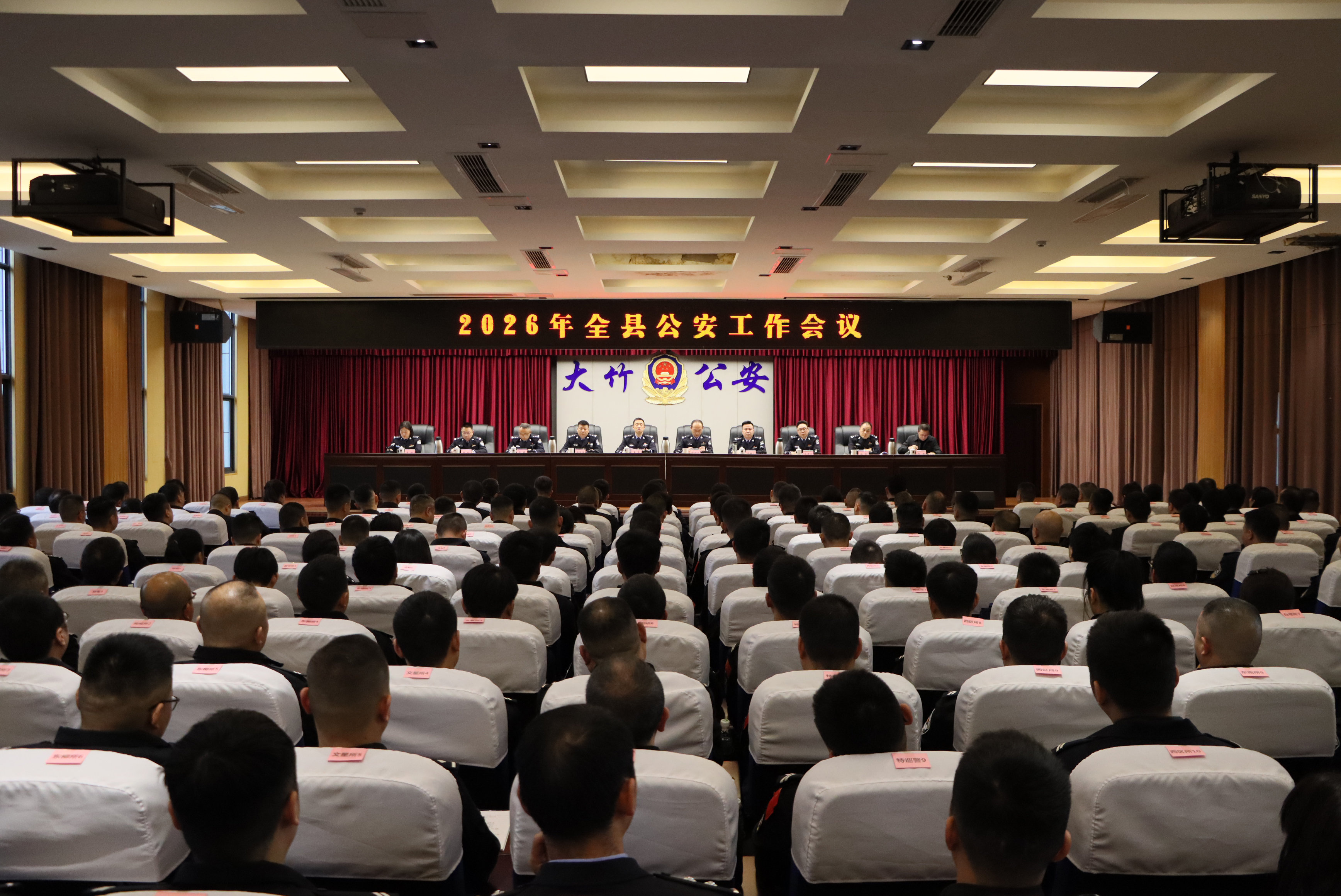 会议要求:2026年是“十五五”开局之年,做好公安工作责任重大、使命光荣。一要聚焦防范打击,守牢高水平安全底线。持续推进“防政治安全风险课题”见行见效,坚决捍卫政治安全。坚持和发展新时代“枫桥经验”,推动落实维护社会稳定责任制,全力维护社会安定。严打电信诈骗、传统侵财等突出违法犯罪,切实保障人民安宁。二要聚焦夯基固本,深化高效能治理实践。做强做精综合情报、专业情报、基础情报,发挥情报实战效能。推进“特巡警机关派出所义警”立体联合巡防体系建设,建设更有品质的安全城市。三要聚焦服务保障,护航高质量发展大局。紧盯县委、县政府战略部署,加强与毗邻地区公安机关协同开展警务交流活动,护航“经济圈”“示范区”。扩大警企联系覆盖面,提高重点企业对接率,完善“重点企业警长制”,打响大竹公安服务品牌。四要聚焦改革创新,激发高标准变革动能。完善“情指行”一体化运行机制,优化县局“三中心”深度融合,以实绩展现大竹公安新质战斗力。聚焦派出所“876”主防重点任务,深化“两队一室”、“两组一岗”改革,筑牢基层基础,建设更有品味的公安事业。五要聚焦严管厚爱,建设高素质过硬铁军。严明政治纪律和政治规矩,扎实推进从严管党治警,创树“清风竹警 f 平安竹城”品牌。落实“惠警实事”,擦亮“暖警之家”品牌。健全关爱激励、容错纠错、澄清正名制度,不断提升队伍凝聚力、战斗力,建设更有品格的幸福铁军。