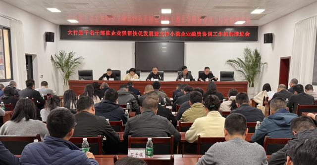 2026年3月13日,大竹县千名干部驻企业强帮扶促发展暨支持小微企业融资协调工作机制推进会在县发展改革局会议室召开。会议传达了国省市近期相关会议精神,听取了我县千名干部驻企业强帮扶促发展及支持小微企业融资协调工作开展情况,安排部署了下一步重点工作。会议由县发展改革局局长邹波主持,杨柳副县长作重要讲话,县级相关部门、各乡镇(街道)及金融机构分管负责同志参加会议。
