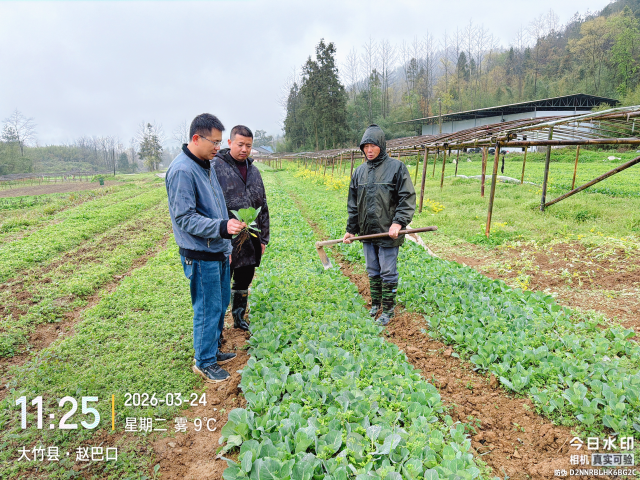 2026年3月24日,大竹县依托“三区”人才支持计划,特邀四川省成都农业职业技术学院练华山教授赴县开展农业技术服务,大竹县农业农村局经济作物站工作人员刘成全程陪同协助,深入一线把脉蔬菜产业发展、传授实用技术。