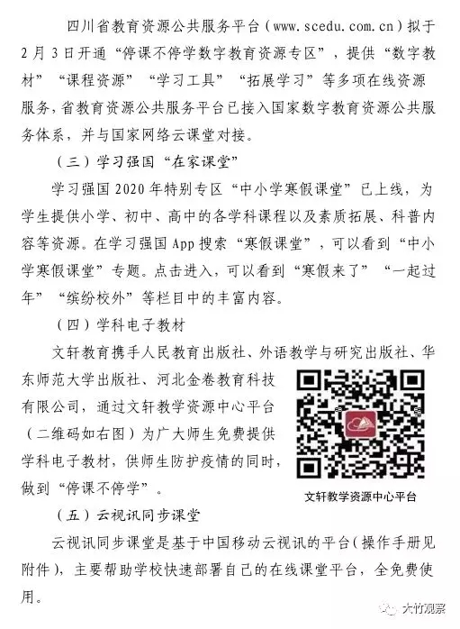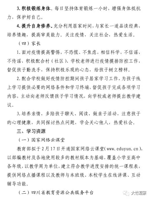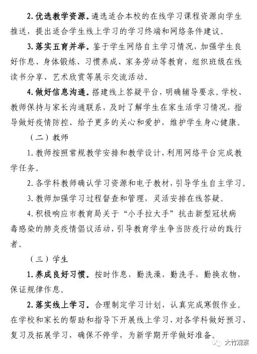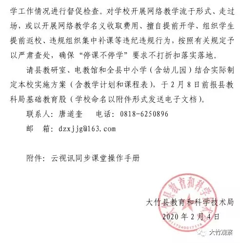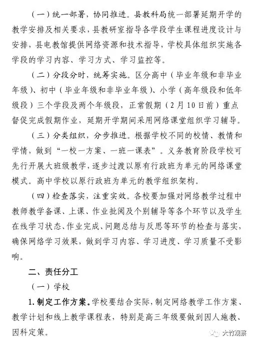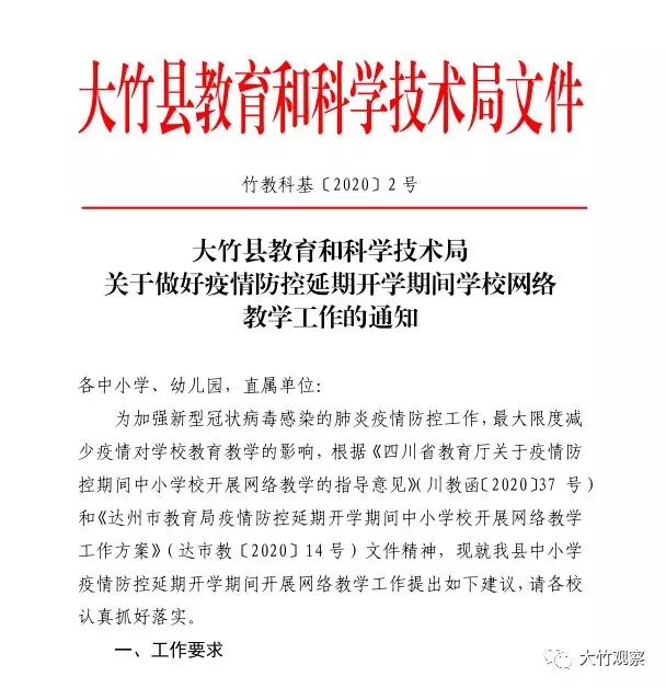 大竹县关于做好疫情防控延期开学期间学校网络教学工作的通知