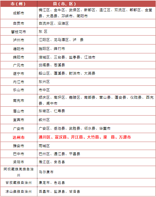 2月28日,四川省卫健委首次公布全省183个县(市、区)疫情分区分级情况。根据通报,截至2月28日0时,全省现有无现症病例区(低风险)116个、散发病例区(中风险)66个、社区暴发和局部流行区(高风险)1个。