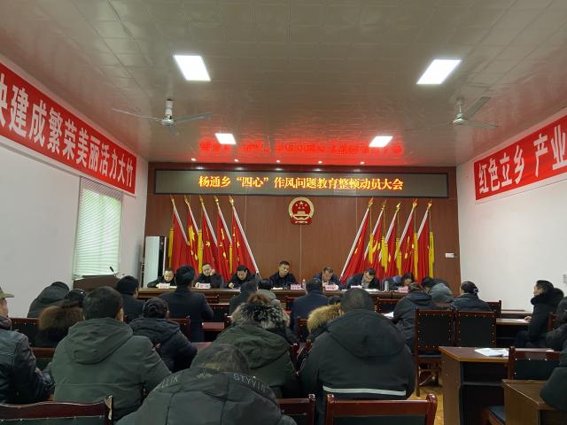 2月11日下午,杨通乡召开“四心”作风问题教育整顿动员大会,全乡机关干部、各村(社区)“两委”全体干部、乡级单位负责人等50余人参会,乡党委书记陈小刚主持会议并作讲话。