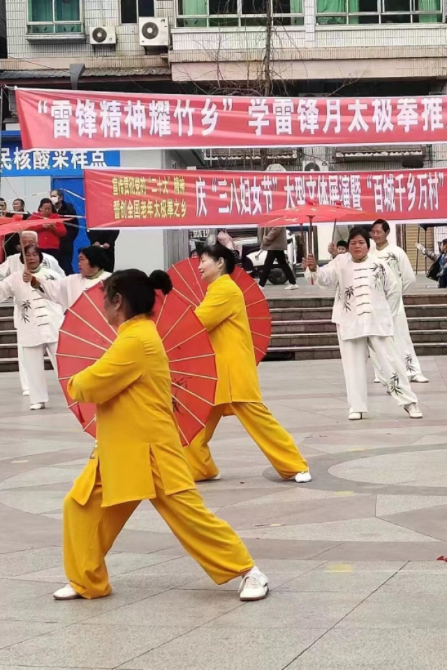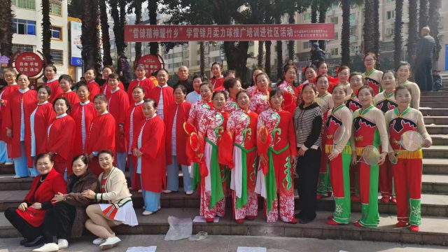 为传承弘扬雷锋精神,绽放文体旅人风采,3月4日上午9点,大竹县文化体育和旅游局健康体育志愿服务队在新华广场开展 “雷锋精神耀竹乡”学雷锋月太极拳、柔力球推广培训进社区活动。