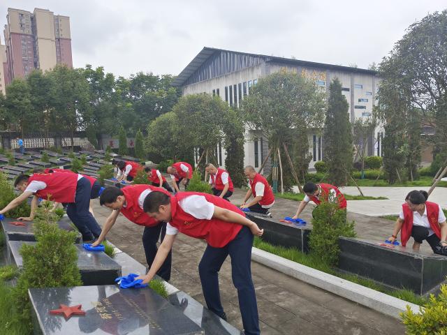 局党组书记、局长李国文同志带领机关志愿者为陵园除草、为烈士擦拭墓碑,以实际行动致敬英烈,缅怀英烈。志愿者们蹲在烈士墓碑旁的草坪中,一边静静地清理着杂草,一边与烈士亲密无间近距离的“交流”着,讲述着我们对烈士的敬仰和新中国翻天覆地的变化。通过大家细心的除草,英烈家园焕然一新,更显肃穆。