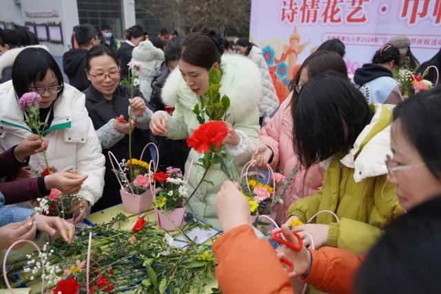 大竹县第九小学于3月8日举办了一场创意插花活动。经验丰富的花艺师从鲜花的寓意、插花材料、选花裁剪、色彩搭配、插花顺序等方面详细地给大家讲授了插花知识。女神们聆听了花艺师专业细致的讲解后,纷纷沉浸于插花创作的无限乐趣中,她们细心地修剪着多余的枝条,精心搭配花朵的颜色与形状,错落有致地将花枝插在花篮中。