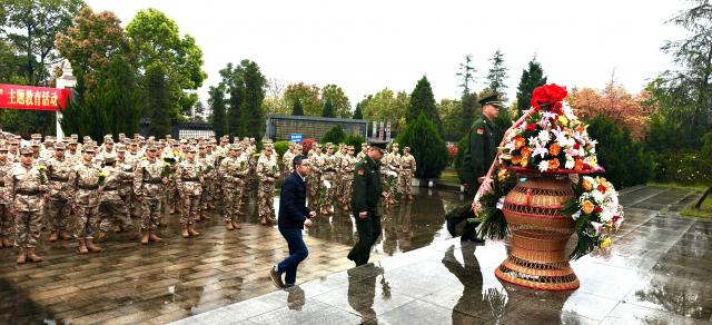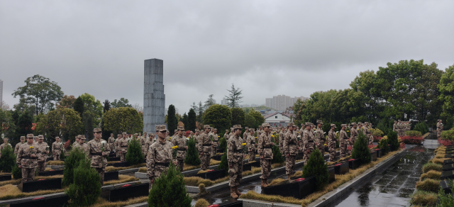 大竹是一片红色沃土,无数英烈曾在此披荆斩棘、浴血奋战。陵园内松柏苍翠,纪念碑巍然矗立。下午3时,祭奠仪式正式开始。全体人员肃立碑前,垂首默哀。细雨拂过新兵年轻的面庞,与低沉的哀思在天地间交织。役前教官迈着铿锵正步敬献花篮,雨水打湿作训服,却让每一步踏得更稳更响。145名新兵手捧鲜花,依次走向烈士墓碑,深深鞠躬、敬献花束。雨水浸润着墓碑前的泥土,也浸润着新兵们的心田。
